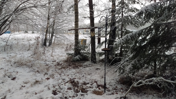 Nu har jag flyttat matningen till ett skogsbryn intill en cykelbana inte långt från skolgården, vilket förhoppningsvis kan attrahera fler arter och närheten till skolgården borde göra det enklare att gå dit med mindre grupper av mer intresserade barn.