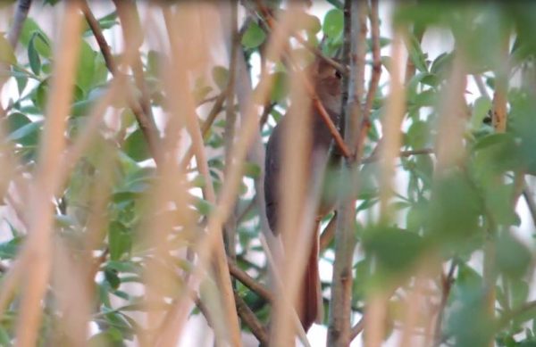Tillägg: Några månader efter denna bloggpost så hade jag turen att se en näktergal sitta helt öppet och sjunga riktigt nära. Så nu har jag inte bara suddiga bilder på något i buskarna.