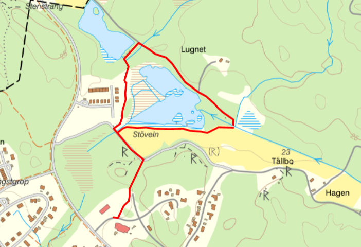 Min lunchrast är 30 minuter så det blir ett ganska rimligt område som dessutom stämmer ganska bra med den natur som ligger närmast och som man kan besöka under lektioner med elever.